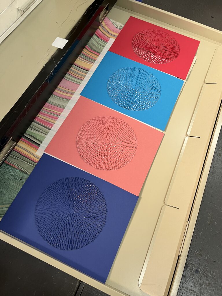 I started 2025 feeling optimistic and hopeful, but it was another tough, draining year of many struggles. I had much less studio time through most of the year, but I focused on a new series of low-relief paper sculpture work that I absolutely love! The year ended on a devastatingly sad note with my mom’s decline in health and death at the end of December. The origami stars (at the end of this post) I made to brighten up her room in palliative care are the last things I made in 2025. I am glad I made them for her.